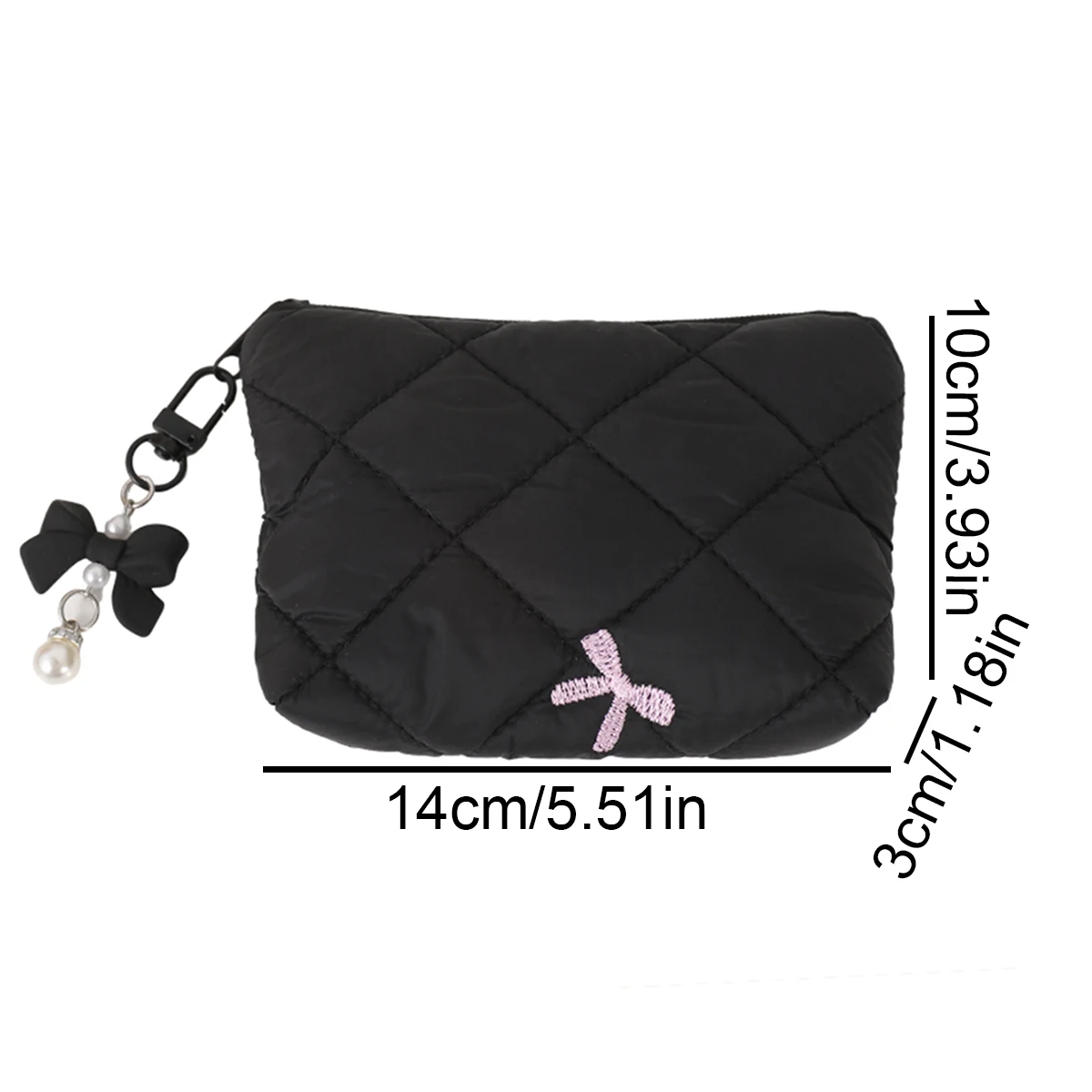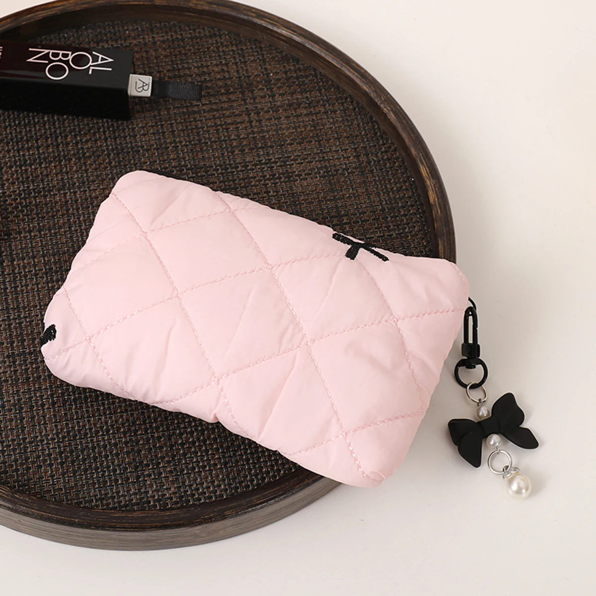 Trousse de maquillage à nœud matelassé, pochette de voyage Portable pour rouge à lèvres, écouteurs et petits articles, pochette à main exquise