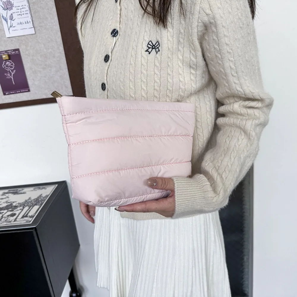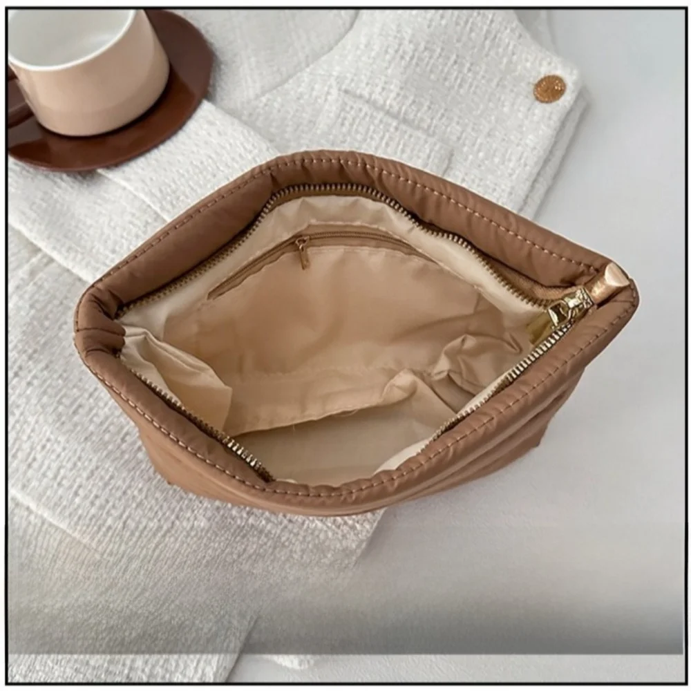 Trousse de maquillage matelassée décontractée, couleur unie, grande capacité, trousse de toilette de voyage, fermeture éclair, gonflée, rembourrée, sac de rangement de cosmétiques pour femmes