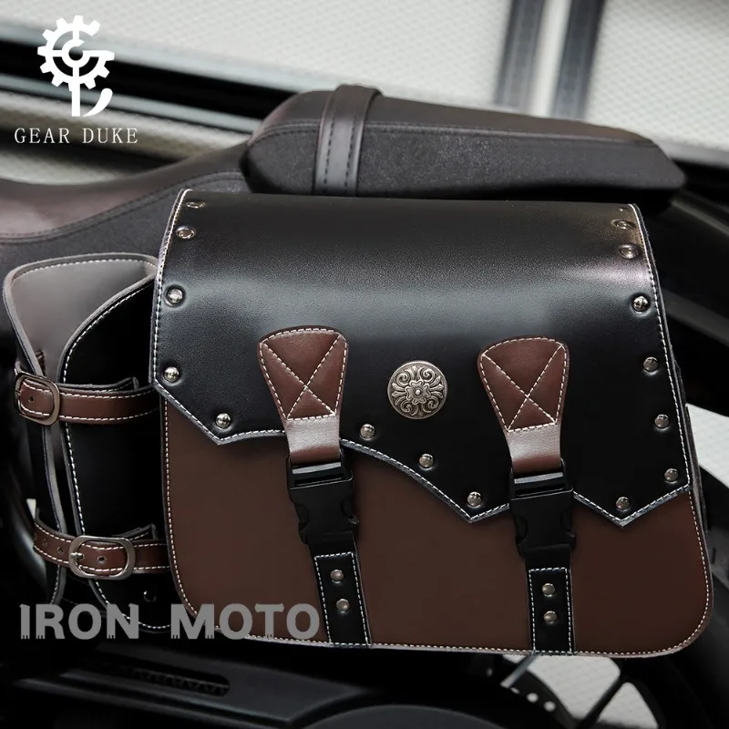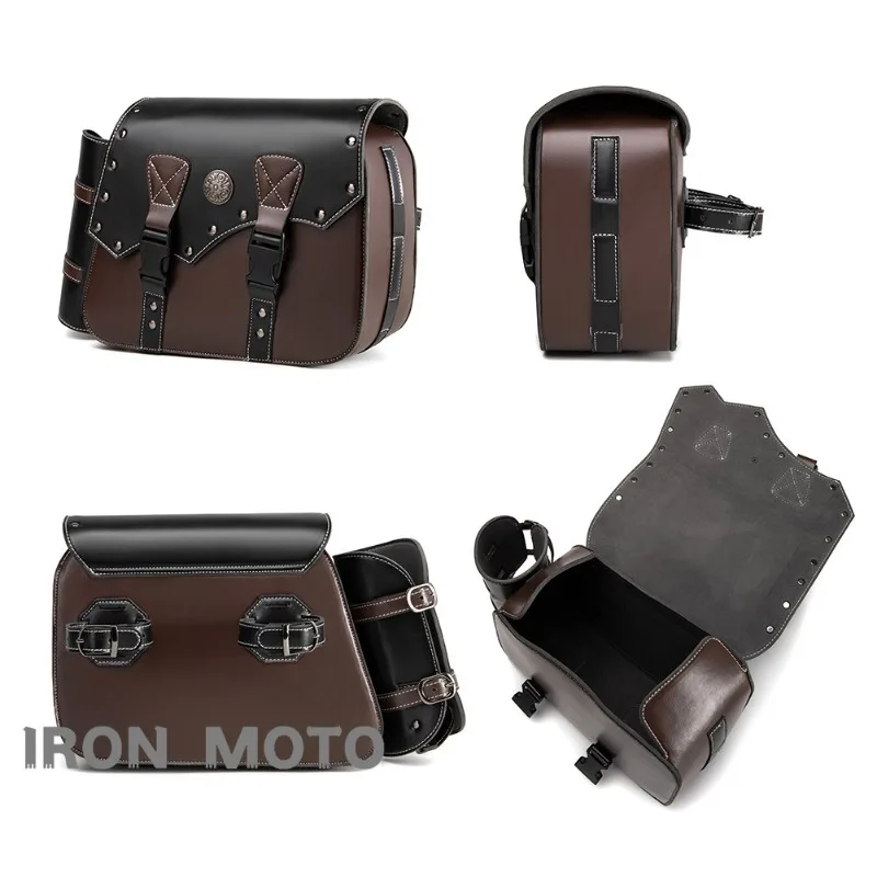 Une paire de sacoches de moto rétro marron en cuir PU, sacoches latérales, sac de selle de motocycliste, accessoires de moto
