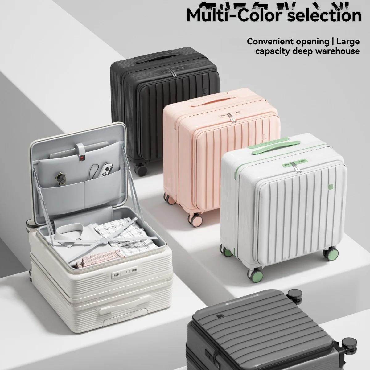 Une petite valise multifonctionnelle à ouverture frontale à compartiment profond pour hommes et femmes, un sac de voyage de 18 pouces pour l’embarquement
