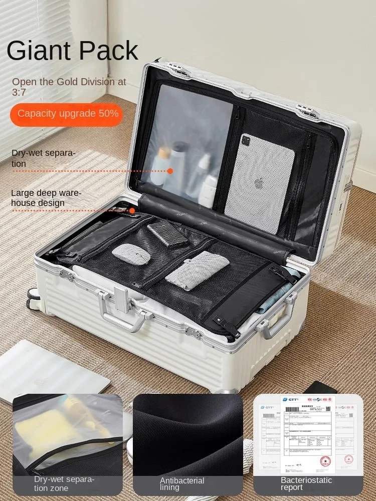Valise à ouverture avant 2025, nouvelle grande capacité, bagages à cadre en aluminium de 20/30 pouces avec porte-gobelet USB, sac pour ordinateur portable, valises de voyage