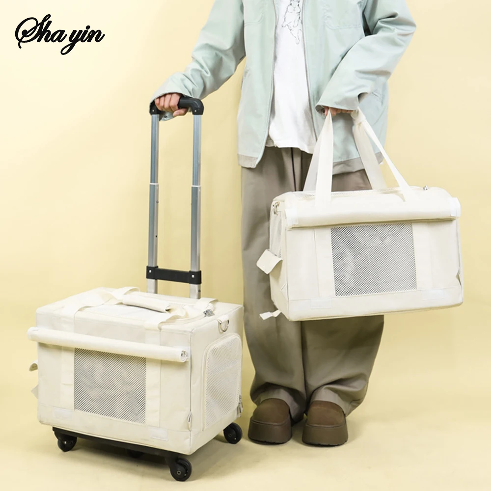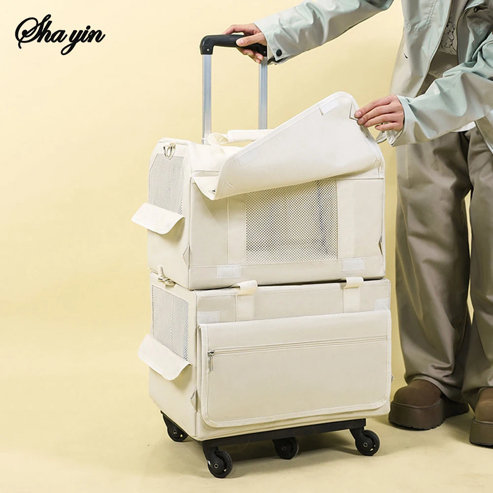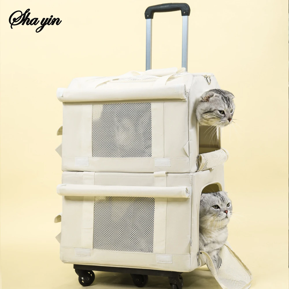 Valise à roulettes Double couche pour animaux de compagnie, 1 pièce, sac pour chat, valise Push-Pull, grande capacité, deux sacs à main respirants pour chiens