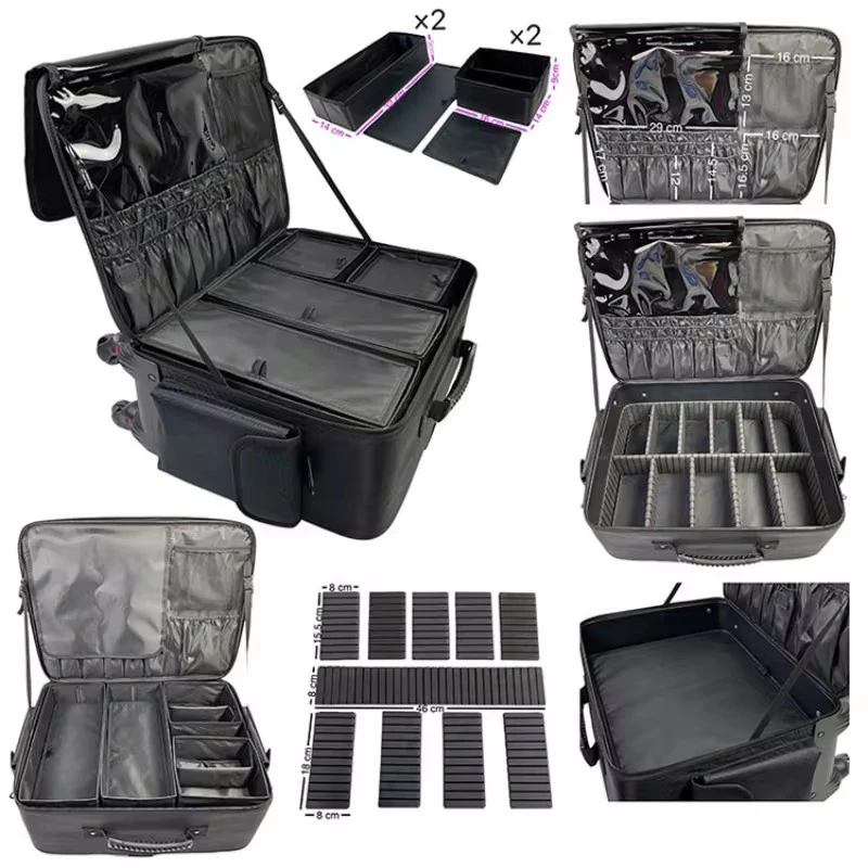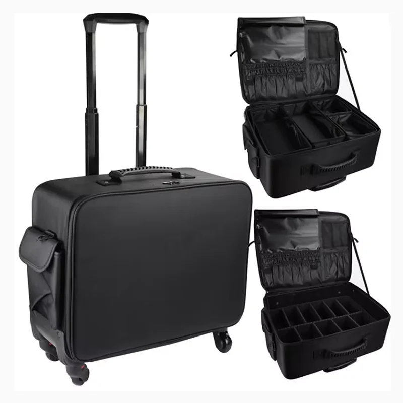 Valise de voyage brodée multicouche de grande taille, valise de maquillage, valise cosmétique, valise à roulettes de rangement, beauté, manucure, sac à main