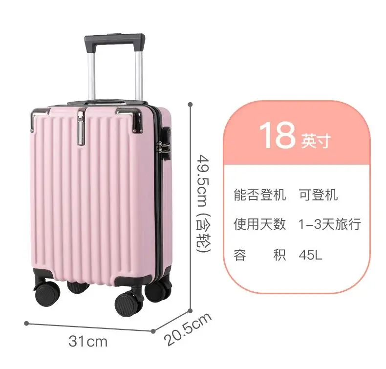 Valise d'étudiant de 18 pouces, sac de voyage pour femmes, valise à roulettes pour la rentrée scolaire, voyage d'embarquement à main |