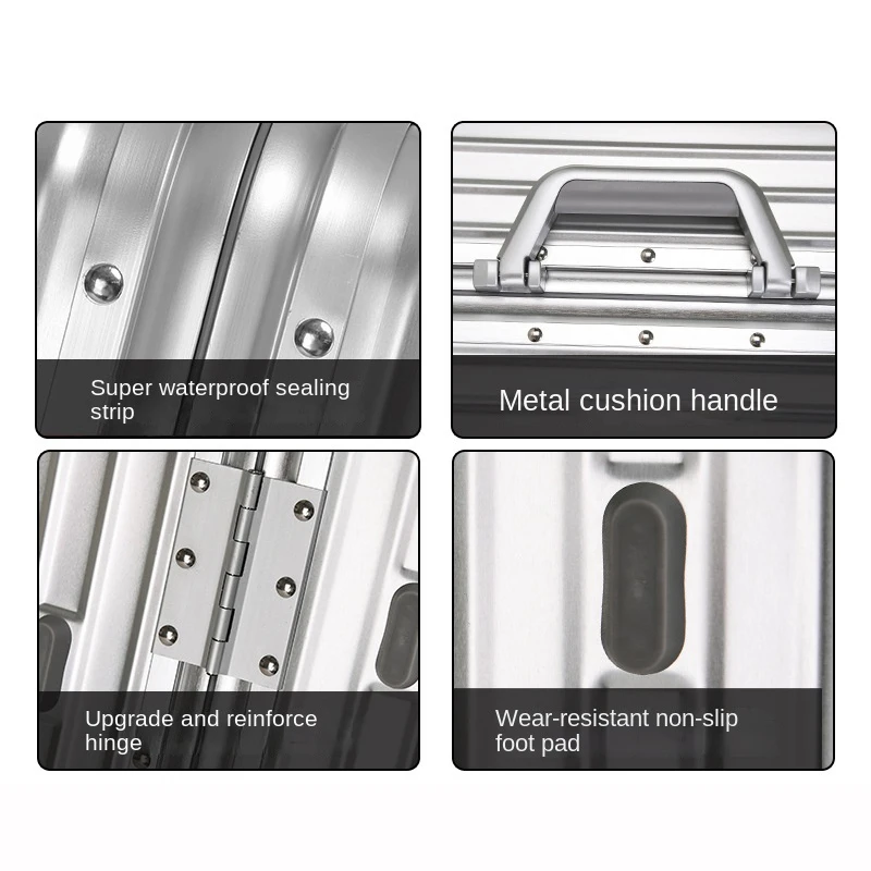 Valise en aluminium magnésium, chariot à mot de passe en métal, valise de voyage bagage à main, bagage à roulettes, 20 « , 26 », 30 « , 100%