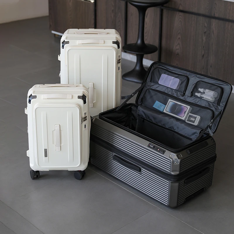 Valise en matériau PC de grande capacité, bagage de voyage à compartiment profond de 20/28/32/34 pouces avec serrure à combinaison, coque rigide à ouverture latérale