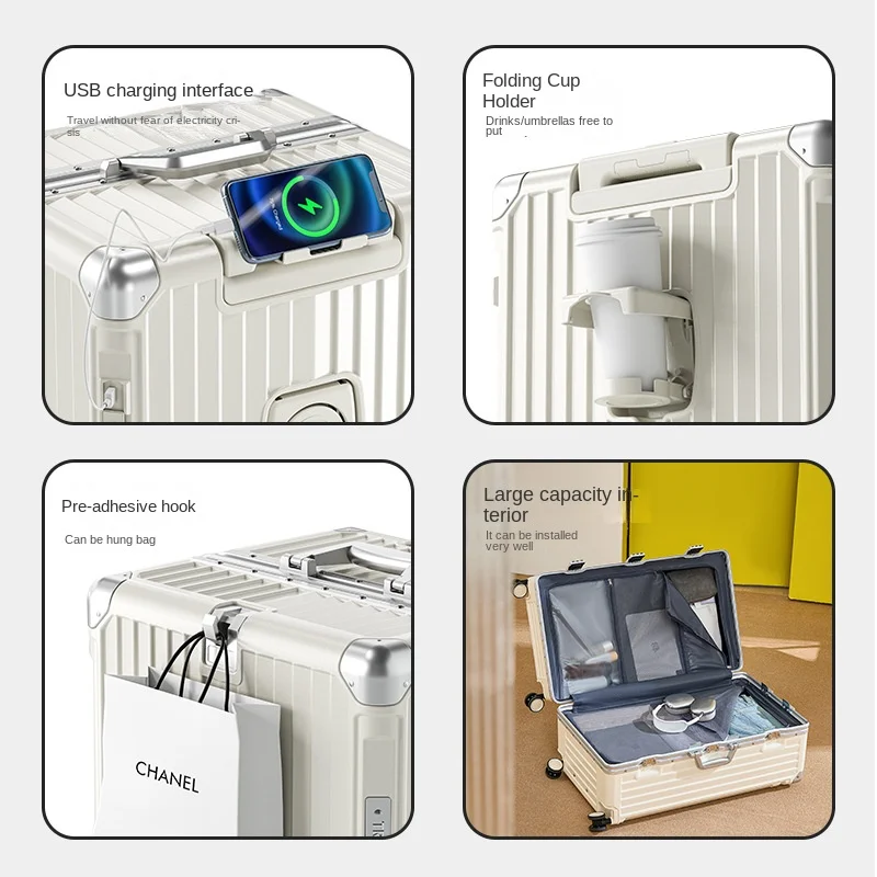 Valise multifonctionnelle valise à main de 20 pouces 24/26/28/30 pouces avec roues Spinner bagage de voyage roulant de grande capacité