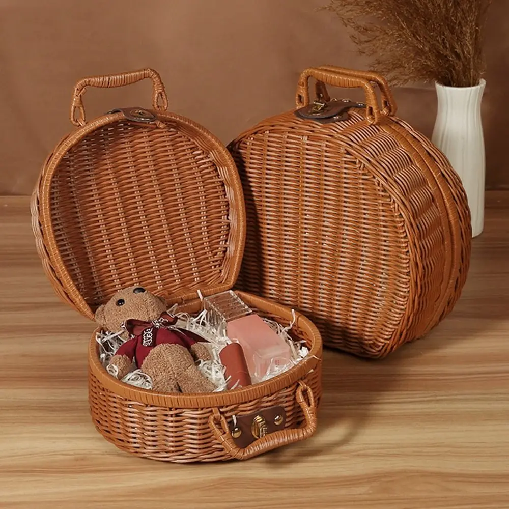 Valise ronde Vintage en osier, panier de pique-nique fait à la main de grande capacité, anti-poussière avec Double poignée, organisateur d'articles divers en plein air |