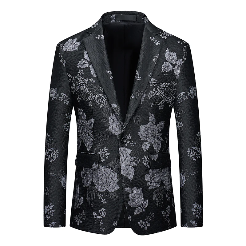 Veste de costume brodée florale pour hommes, grande taille, vêtements de cérémonie, simple boutonnage, coupe cintrée, Blazer à revers cranté pour scène et affaires, M-6XL |